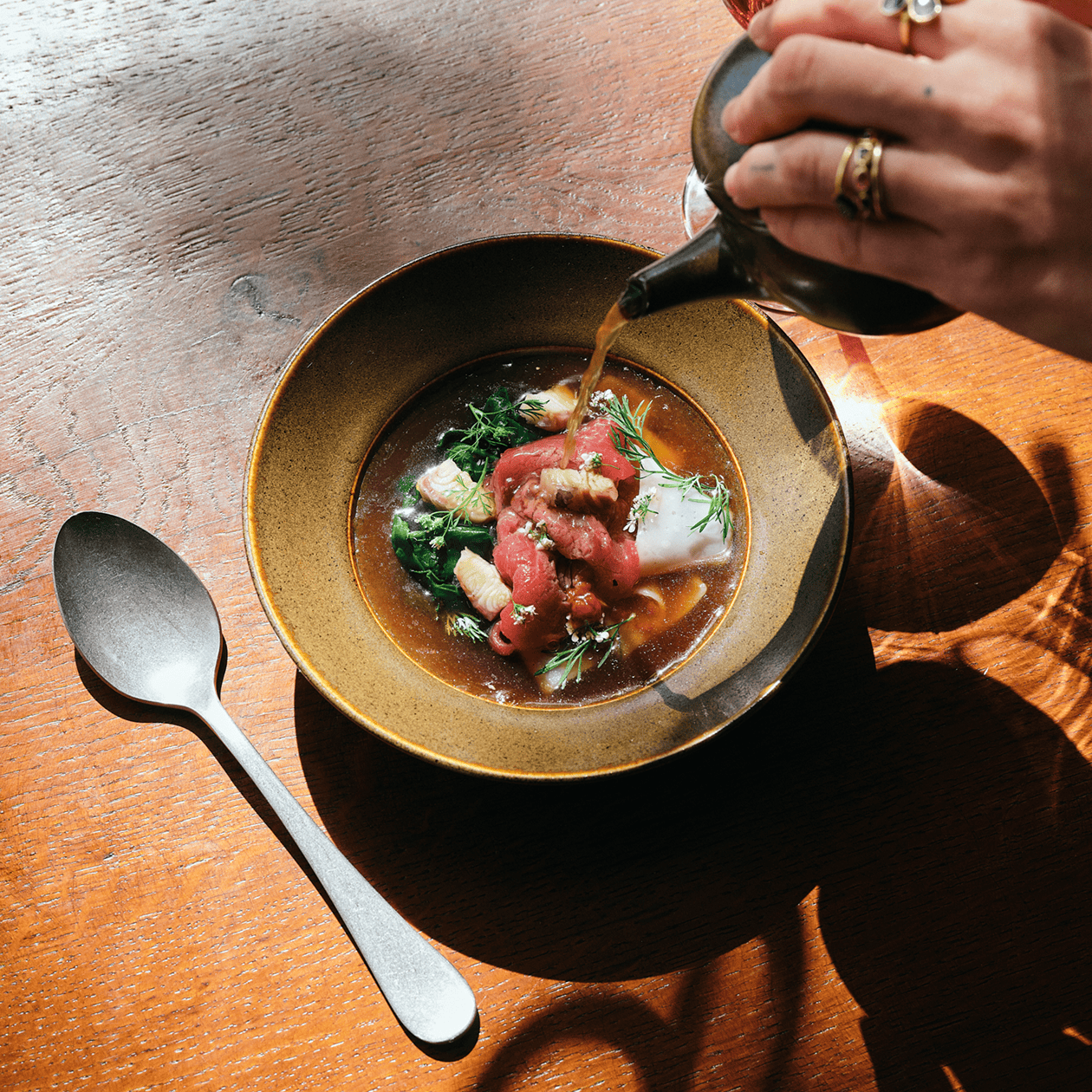 Inspired by the Atlantic and the Mediterranean, along with Scandinavian influences picked up from time at Ekstedt* and Gastrologik**, the pair mix unorthodox produce from the land and sea in mar i muntanya dishes like ‘red prawn tartar, acorn fed Iberico pancetta, egg yolk’; ‘charcoal grilled leek, chorizo béarnaise, air dried tuna’; and ‘brill with wild garlic pil-pil’.