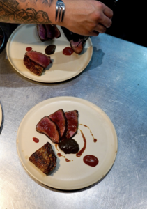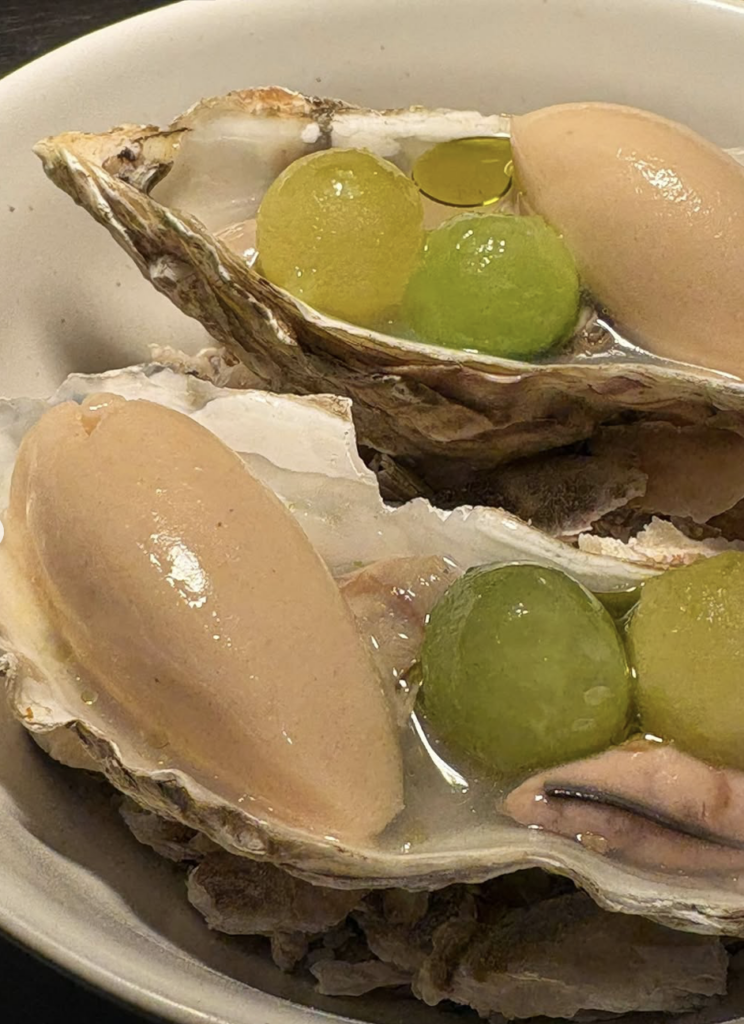Daniel’s no self-styled bad boy though. He’s a thoughtful chef of exceptional pedigree (Narisawa, Noma, Sketch, The Square, Maze…) who’s doing it his own way, for the love of cooking, and the enjoyment of creating little works of art on a plate like ‘Smoked Tuna Rillette Conolo, Sour Cream, Confit Datterini, Pistachio’; ‘Vanilla-Braised Fennel, Kalamata, Parmesan Fondue, Tomato XO’; and ‘Grilled Peaches, Baked Raspberry Ice Cream, Genmaicha and Holy Basil Sauce.’